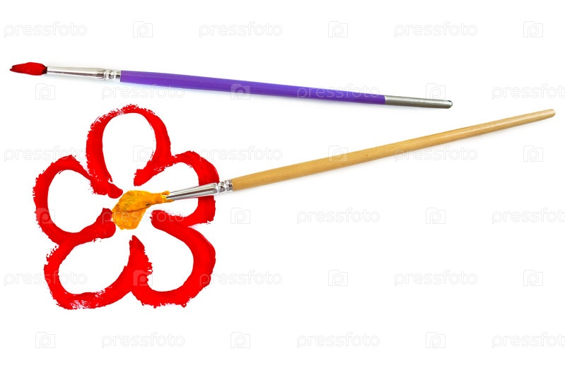 Краски и кисточки, изолировано на белом