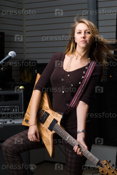 Красивая молодая девушка с гитарой