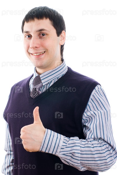 Молодой человек в полосатой рубашке на белом фоне