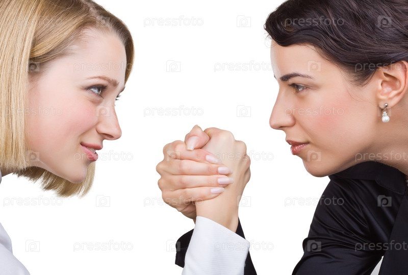 Две девушки борются на руках