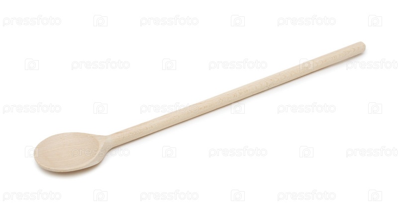 Новая деревянная ложка, изолированная на белом фоне
