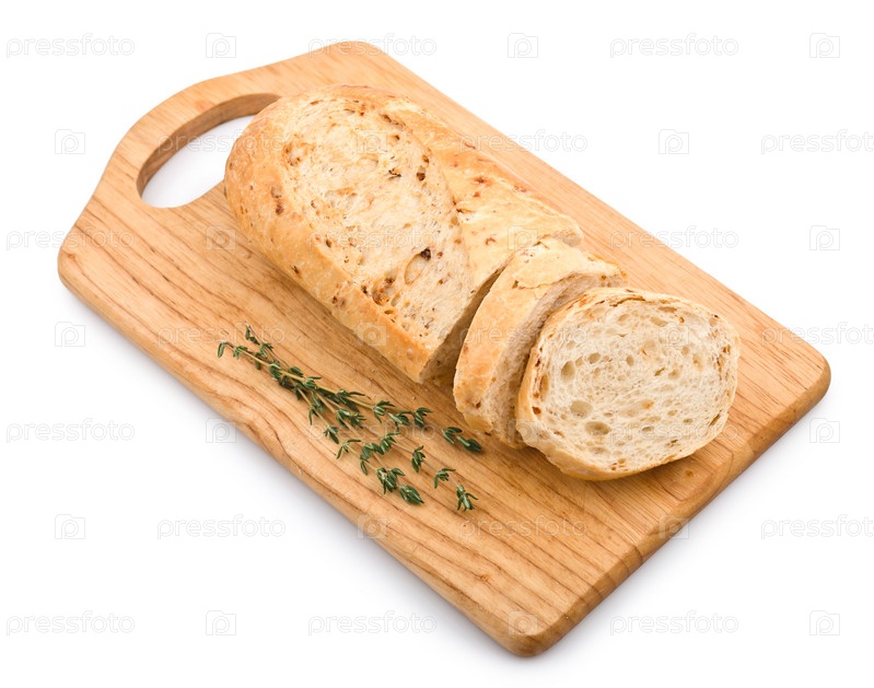 Свежий хлеб на деревянной доске на белом фоне