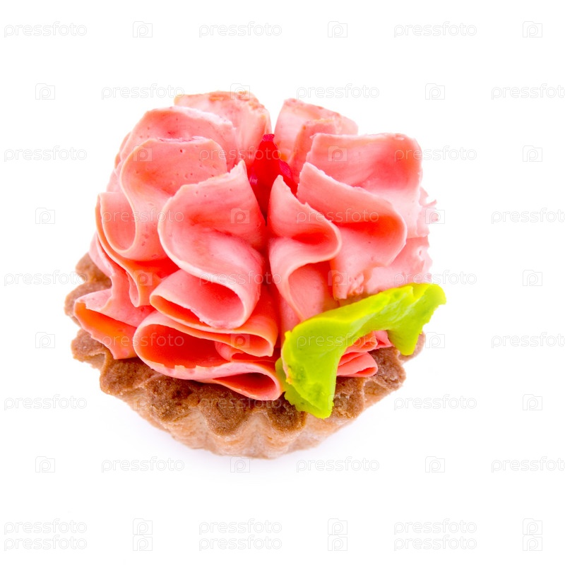 Пирожное с розовым кремом, изолированное, на белом фоне