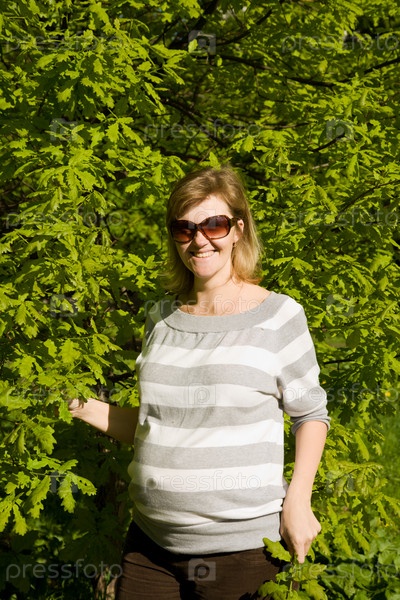 Беременная женщина в листве