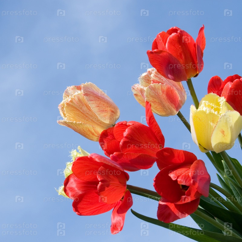 Букет тюльпанов на фоне неба