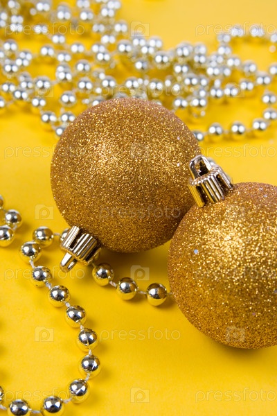 Рождественские украшения на желтом фоне