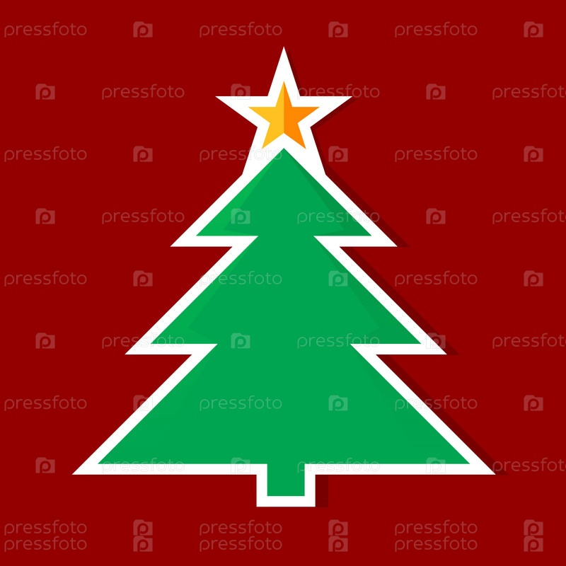 Рождественская елка оригами. Иллюстрация на красном фоне