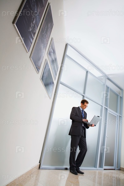 Бизнесмен стоит в коридоре