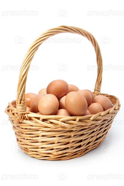 Яйца в корзине на белом фоне