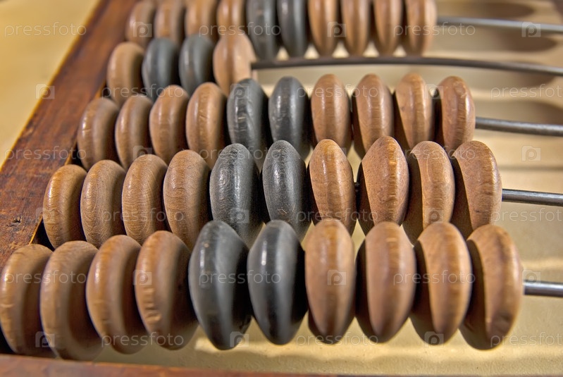 Деревянные счеты на светло-коричневом фоне крупным планом