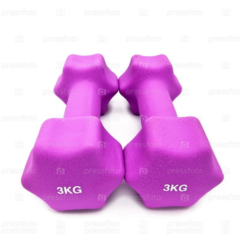Пара розовых гантелей на белом фоне