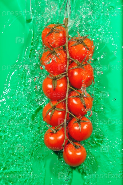Ветка томатов в брызгах воды