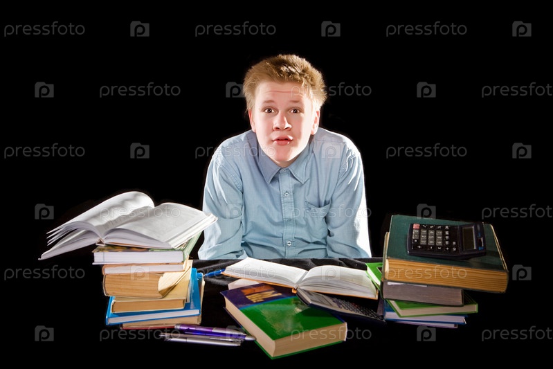 Подросток с кучей учебников