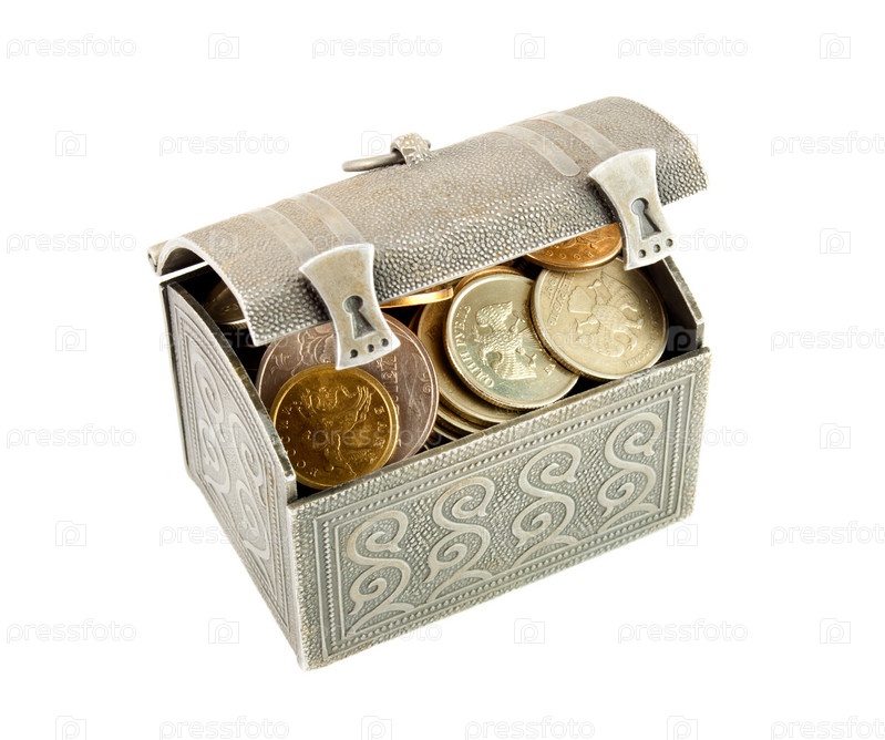 Металлический сундучок с монетами