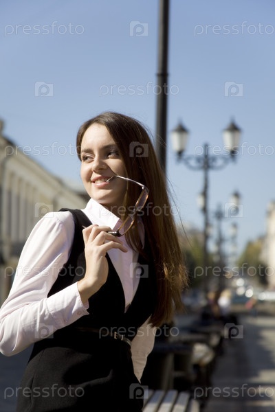 Молодая женщина в городе - солнечный день