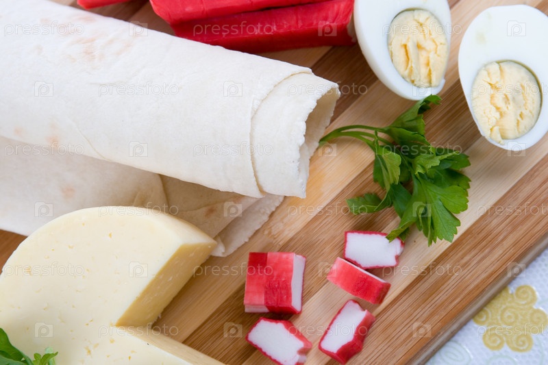 Ингредиенты для салата на деревянной доске