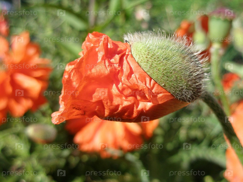 Красный мак на фоне природы. деталь. макро