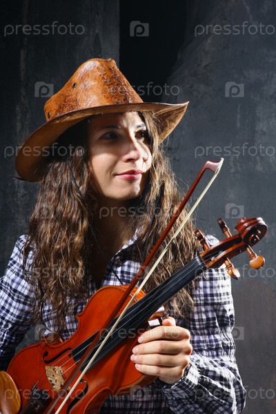Красивая скрипач кантри-исполнитель на черном фоне
