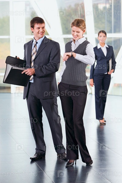 Портрет молодых бизнесменов на встрече в закрытом помещении