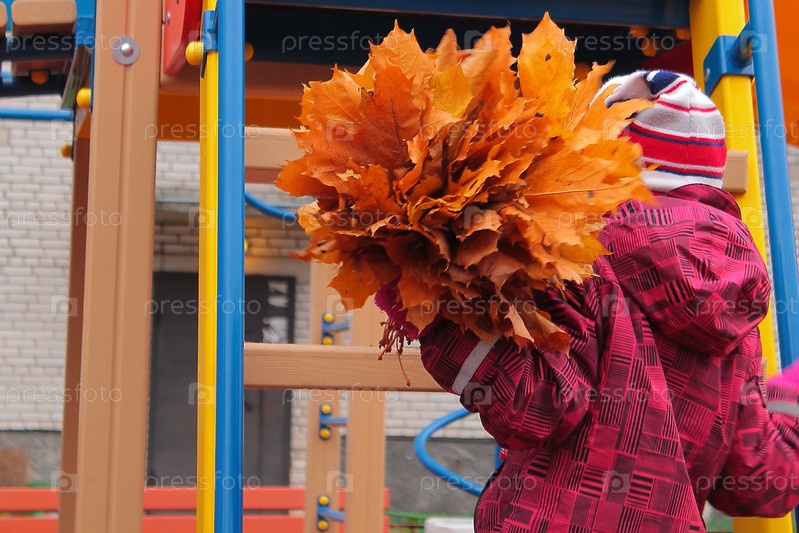 Маленькая девочка с осенними листьями
