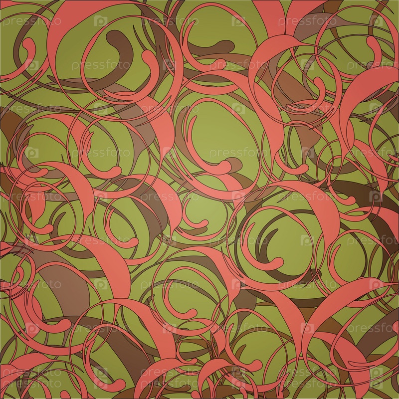 Зеленый фон с розово-коричневыми завитками. Векторная иллюстрация