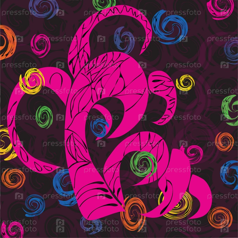 Розовое абстрактное дерево с различными элементами на темном фоне. Векторная иллюстрация