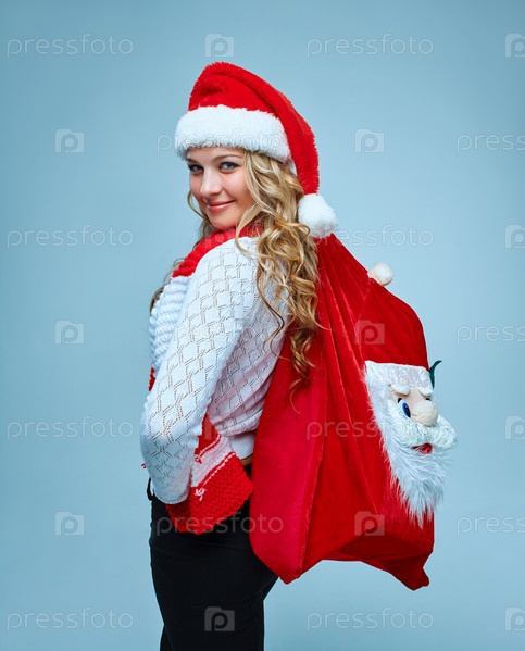 Девушка с рождественским мешком