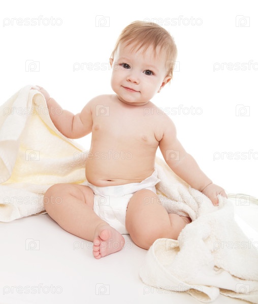 Малыш в полотенце на белом фоне
