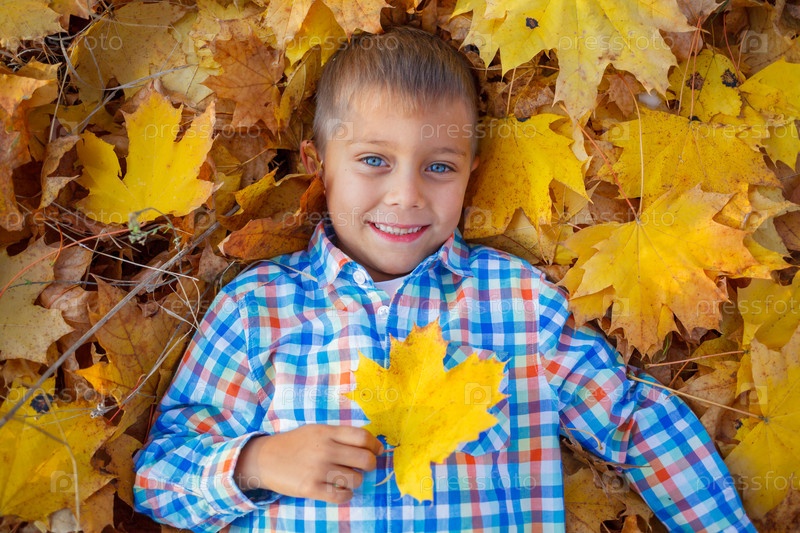 Мальчик в осенней листве
