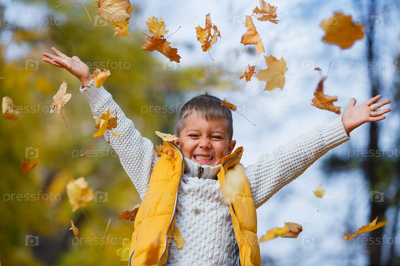 Мальчик с осенней листвой