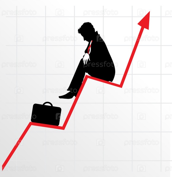 Силуэт бизнесмена, сидящего на ступенчатой диаграмме