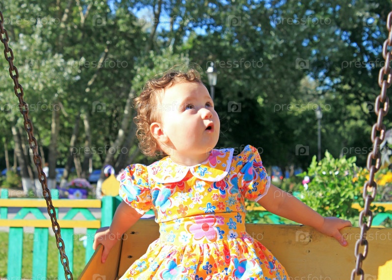 Девочка качается на качелях