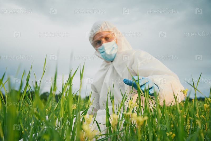 Ученый в защитном костюме на природе