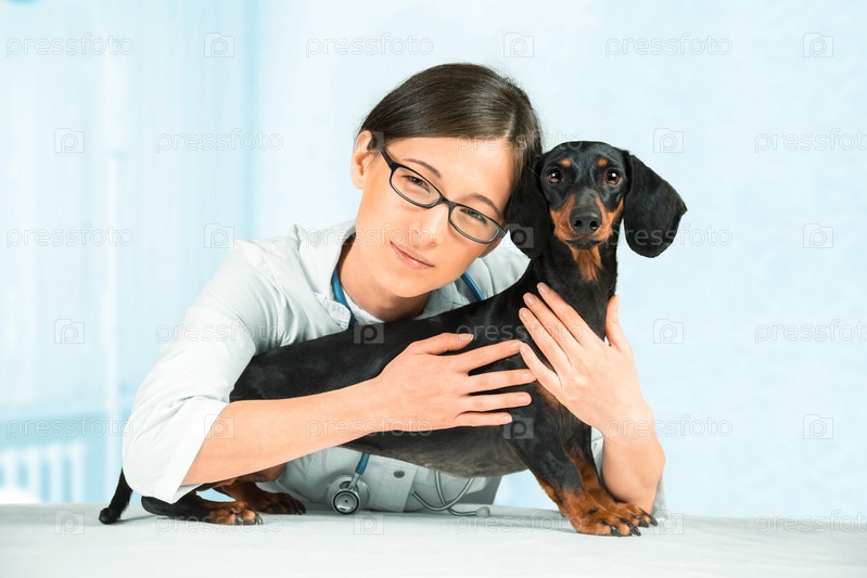 Женщина-ветеринар с собакой