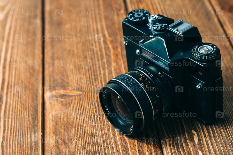 Фотоаппарат на деревянном столе