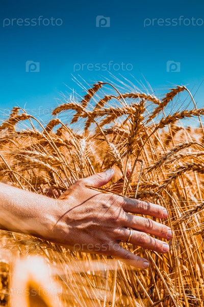 Рука в колосках пшеницы