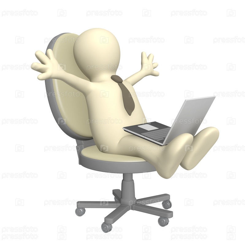 Человек, сидящий в кресле с ноутбуком на коленях
