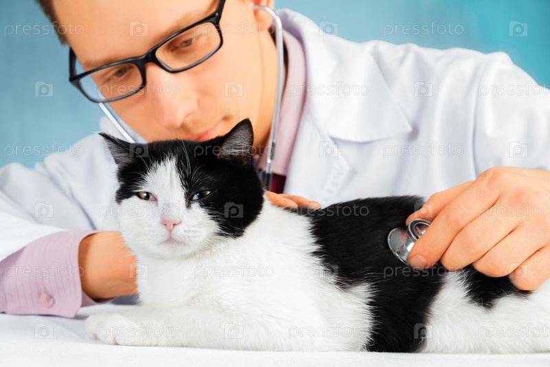 Ветеринар слушает кошку