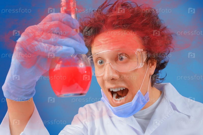 Безумный Ученый смотрит на колбу