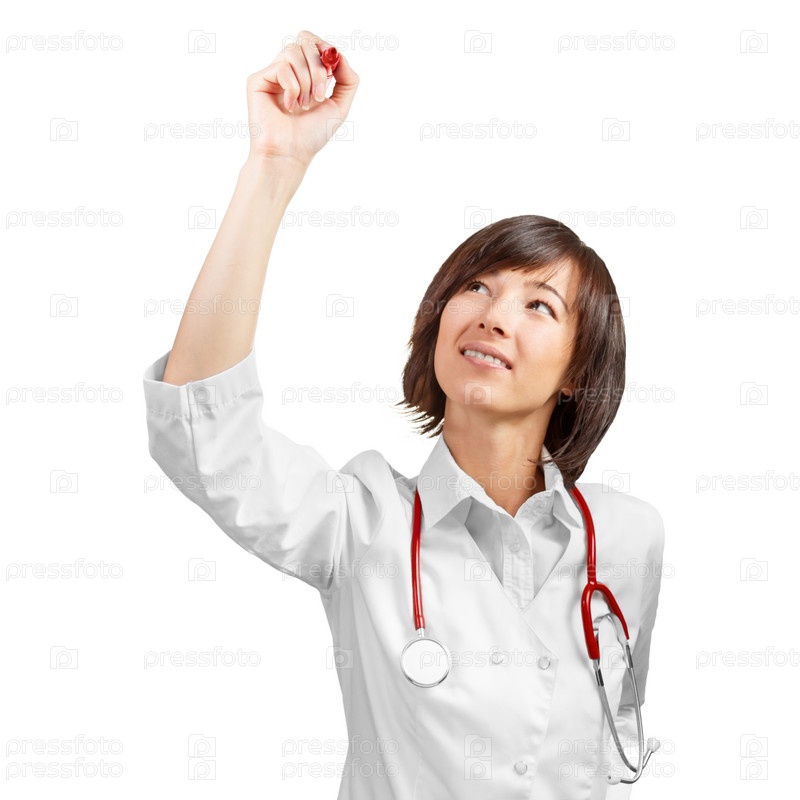 Женщина-врач пишет
