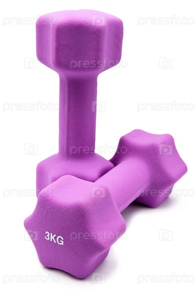 Две розовые гантели на белом фоне