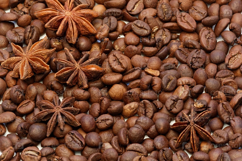 Россыпь кофейных зерен с плодами аниса