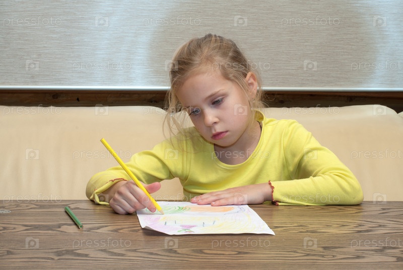 Девочка рисует карандашами