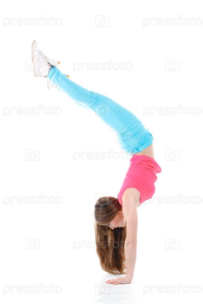 Гимнастка, стойка на руках