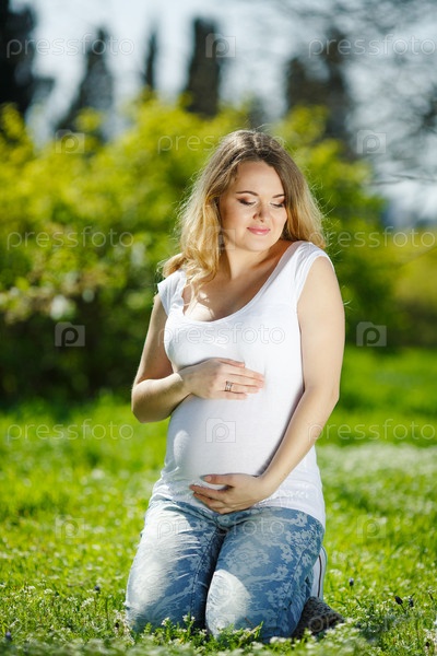 Красивая беременная женщина в парке