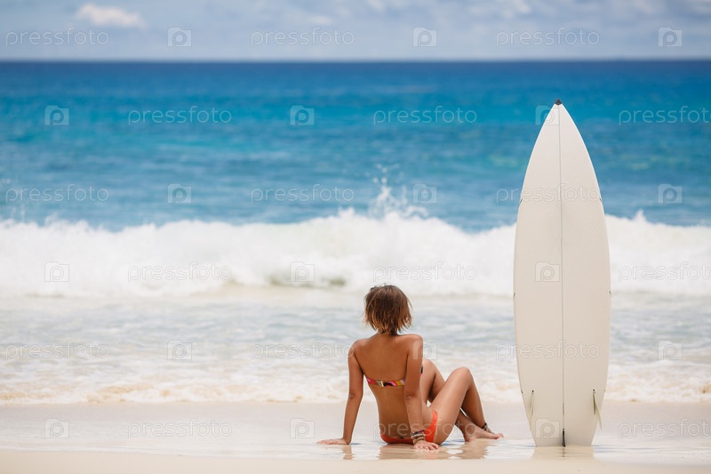 Красивая женщина-серфенгист