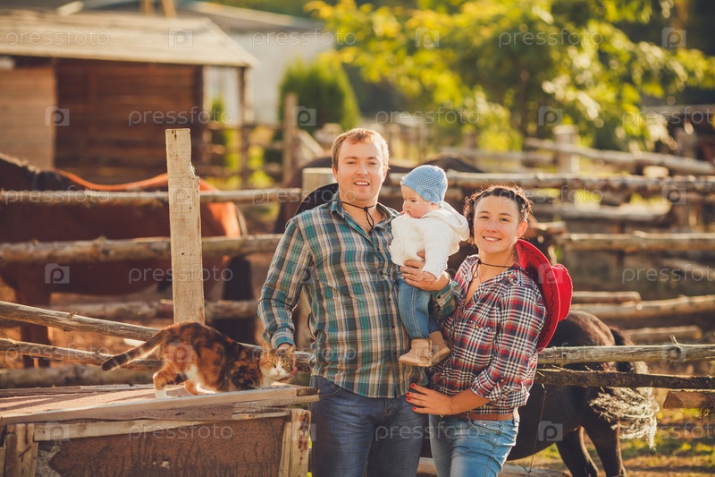 Счастливая семья на ранчо
