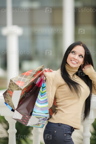 Красивая брюнетка с покупками