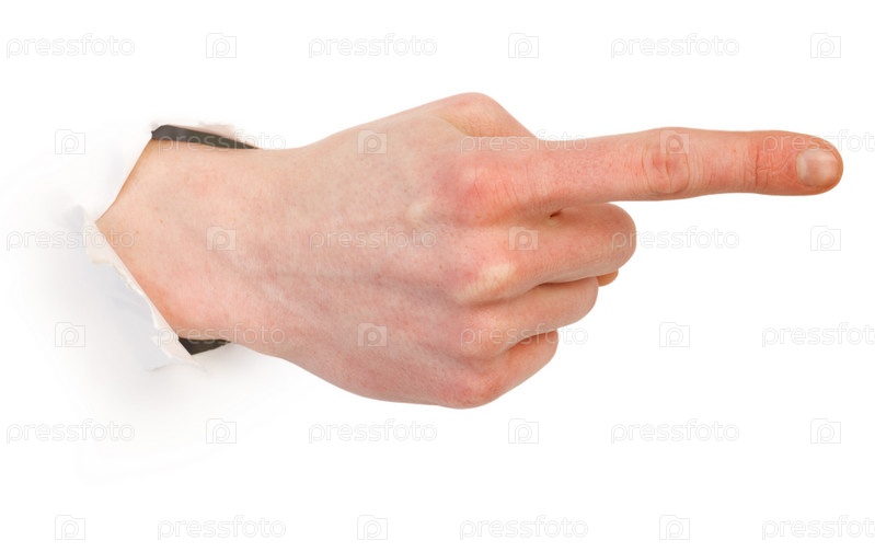 Жест мужской руки через белую бумагу, сфотографированную на белом фоне