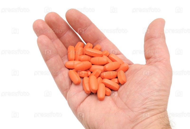 Горсть таблеток в руке